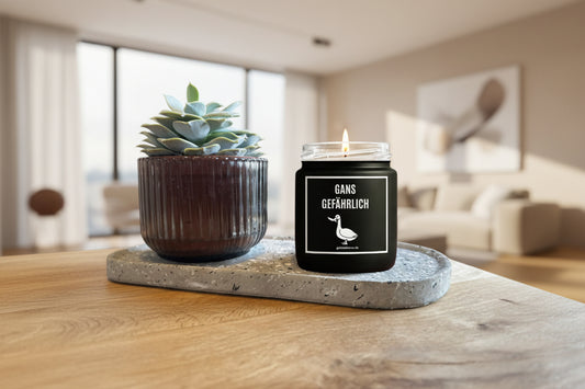 Vegane Bio-Kerze mit Spruch – GANS GEFÄHRLICH