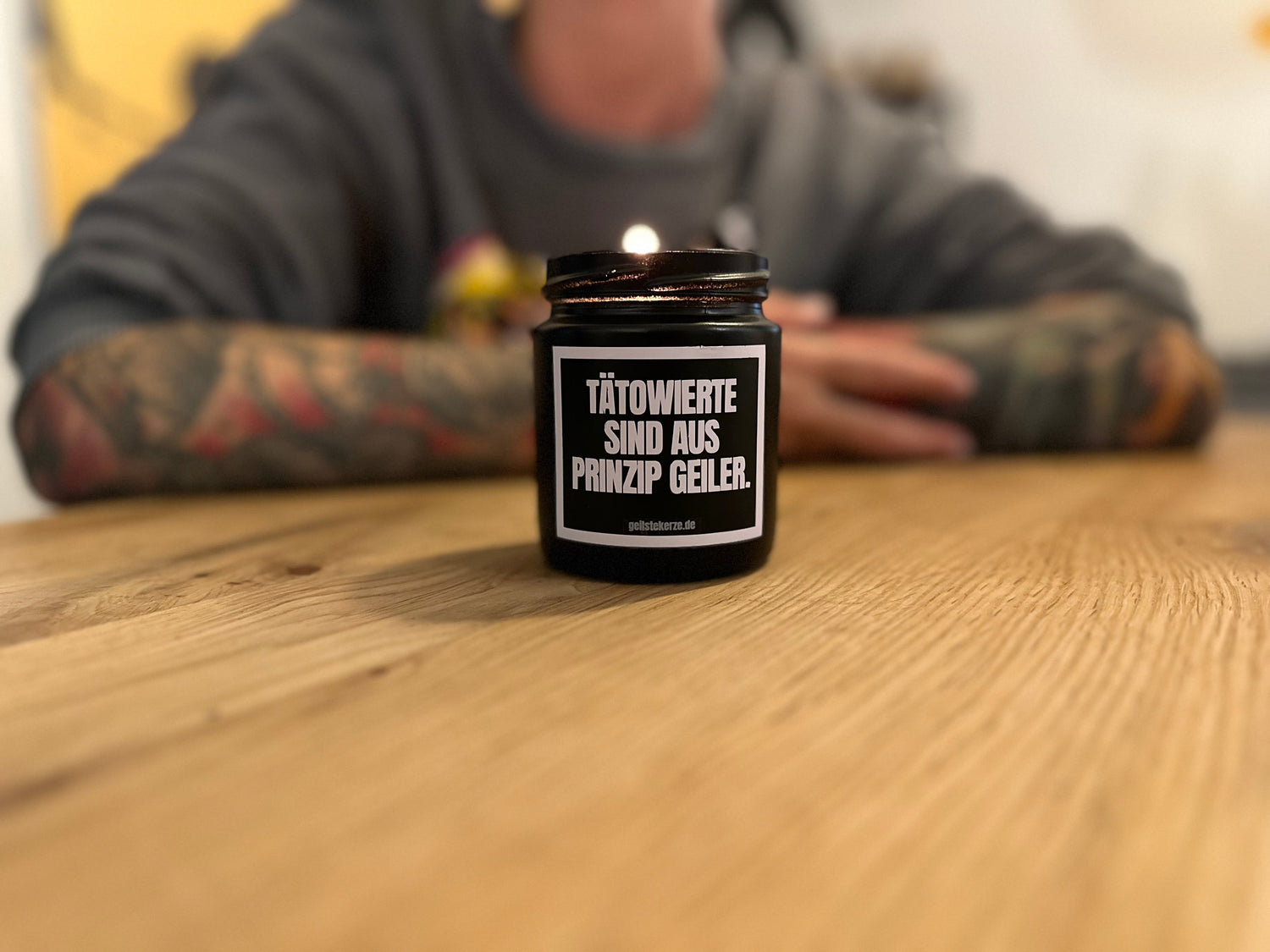 Duftkerzen mit Spruch die unter die Haut gehen. Setze mit diesen Tattoo-Spruchkerzen...